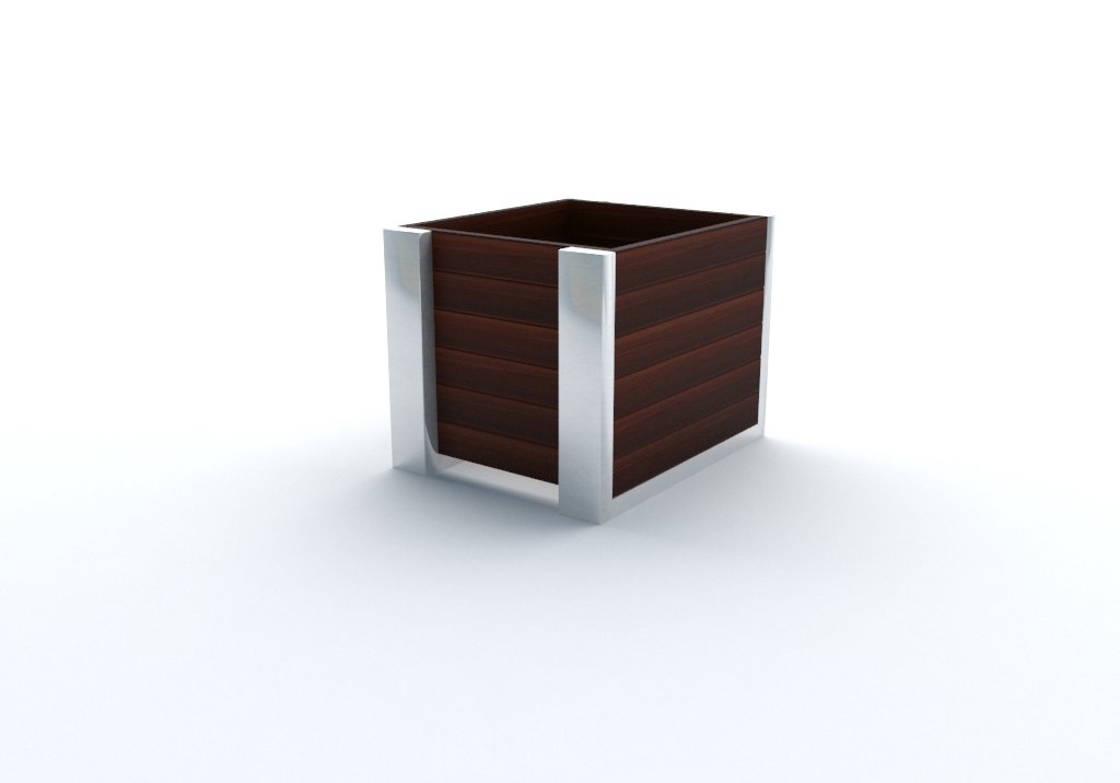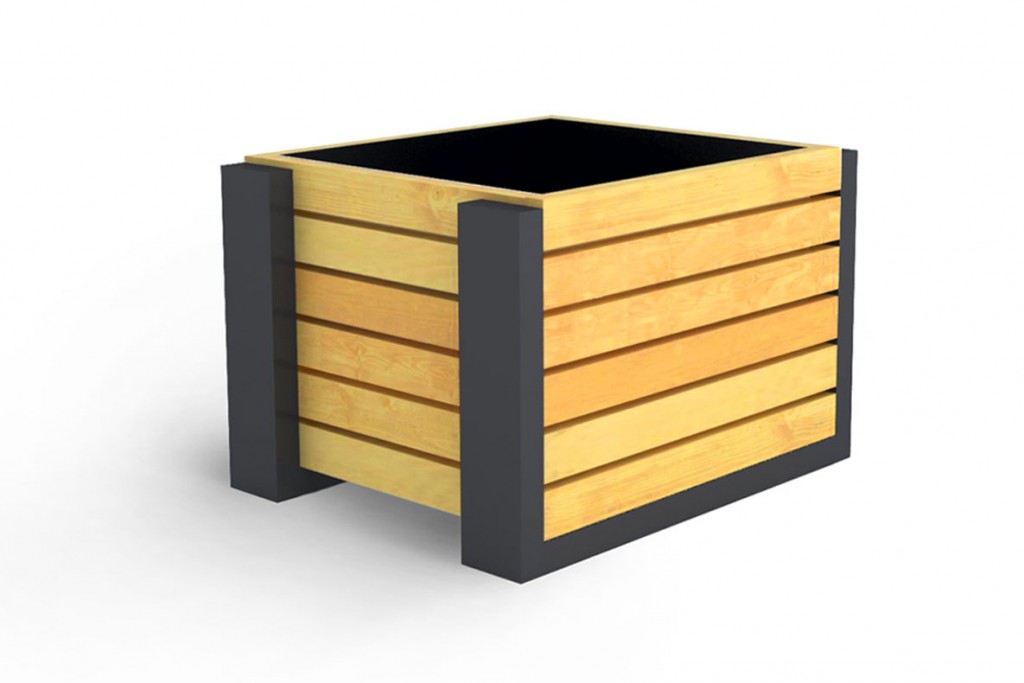 Donice miejskie, donice stalowe wykonane ze stali lakierowanej proszkowo lub ze stali nierdzewnej - oznaczenie Donica miejska Caspe, kod: 0324SN z wypełnieniem z impregnowanego, lakierowanego drewna jodła, jesion, dąb lub z listew z drewna egzotycznego.