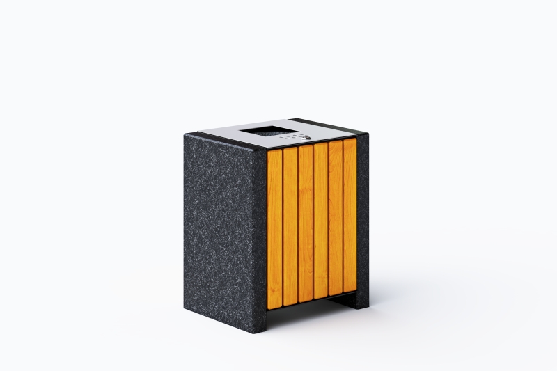 Kosze miejskie Impala  - kosz na śmieci wykonany z kamienia impala i listew z drewna jodła, jesion, dąb lub egzotycznego. Kosz parkowy wyposażony w wkład stalowy z popielnicą. Kosz uliczny z zamykana klapą. Pojemnik na odpady o wysokiej jakości i estetyce wykonania, wandaloodporny kosz miejski.