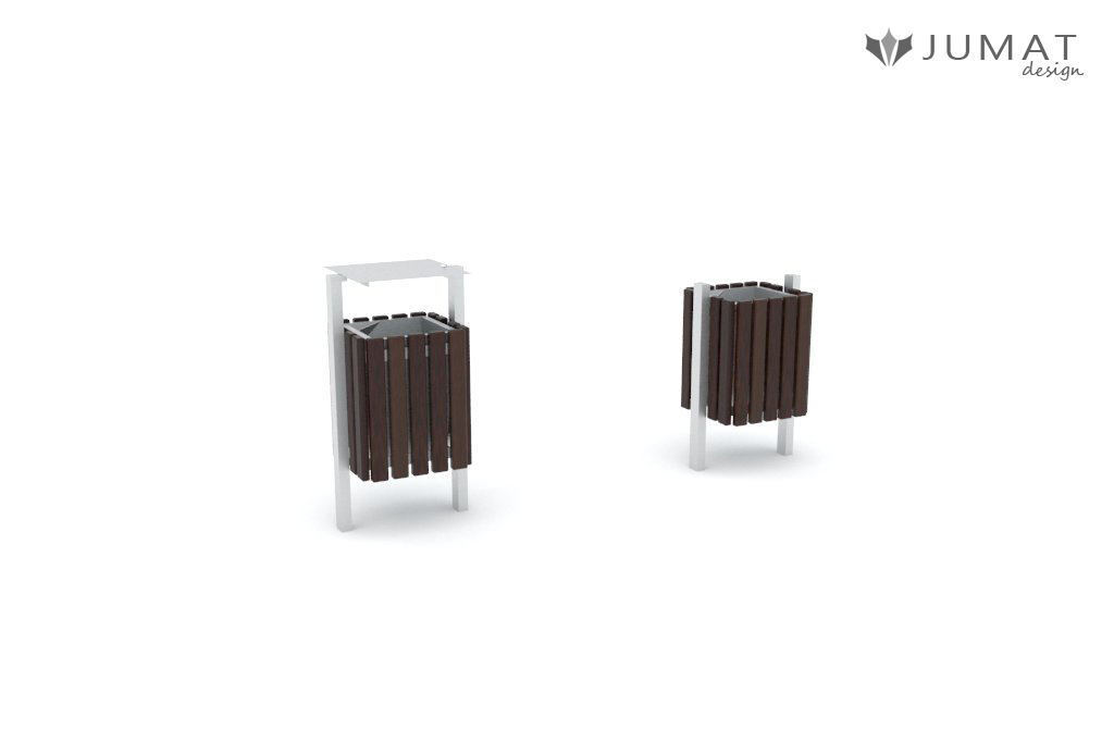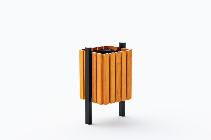 Kosze parkowe Modern w obudowie drewnianej (jodła, jesion egzotyk), ze stali lakierowanej proszkowo lub alternatywnie ze stali nierdzewnej. Kosze miejskie do zabetonowania w podłożu, wyposażone w wkład stalowy z popielicą. Pojemniki na odpady uzupełniające kolekcje mebli parkowych serii Modern w tym m.in. ławek parkowych, donic miejskich, parkingów rowerowych, tablic informacyjnych i innych elementów małej architektury Modern.