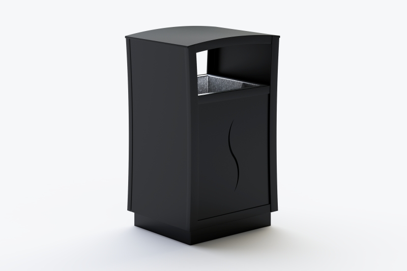 Kosze parkowe S wykonane ze stali lakierowanej proszkowo. Duży, funkcjonalny, zamykany na zamek, wyposażony w wkład z popielnicą pojemnik na odpady. Tego typu kosze miejskie montowane są w miejscach o dużym natężeniu ludzi, w galeriach handlowych, w okolicach stadionów sportowych, przy miejskich ośrodkach rekreacyjnych.