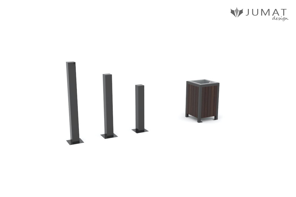 Kosze uliczne Modern ze stali lakierowanej proszkowo lub alternatywnie ze stali nierdzewnej, kosze parkowe w obudowie drewnianej z listew z drewna do wyboru jodła, jesion, egzotycznych. Kosze miejskie Modern wyposażone w wkład stalowy z popielnicą przewidziane do montażu przez postawienie, zabetonowanie lub przykręcenie do podłoża. Proste, trwałe, funkcjonalne, produkowane w różnych rozmiarach pojemniki na odpady uzupełniające kolekcje ławek parkowych, donic stalowych, osłon na drzewa, krat stalowych, tablic informacyjnych Modern.