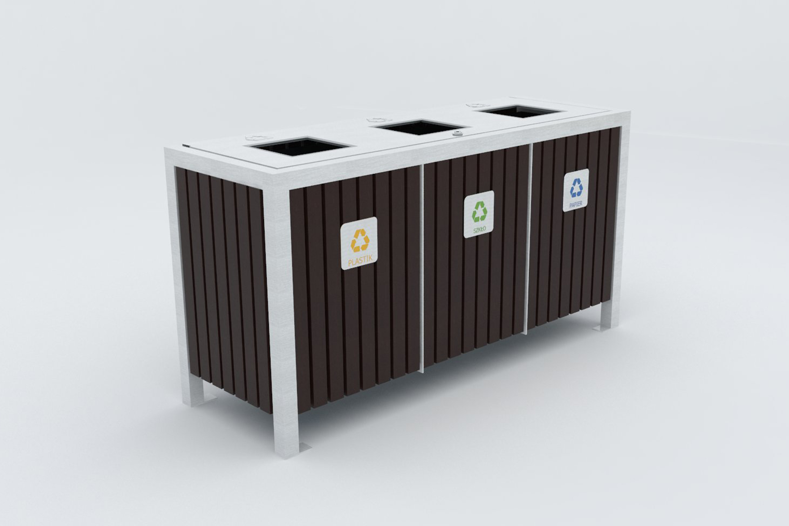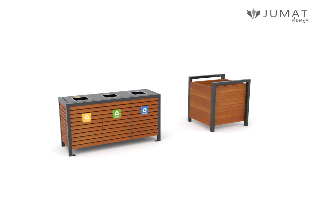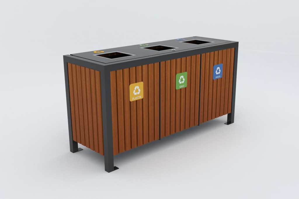 Pojemniki do segregacji odpadów wykonane ze stali lakierowanej proszkowo lub stali nierdzewnej (oznaczenie Kosz Modern do segregacji odpadów kod: 1203SN). Kosze miejskie wypełnione listwami z drewna typu jodła, jesion, dąb lub drewna egzotycznego, kosze parkowe do segregacji odpadów wyposażone w wkłady stalowe, wyposażone w zamek i klucz służący do opróżniania.