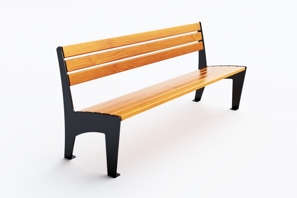 Ławki parkowe Nike z oparciem wykonane ze stali lakierowanej proszkowo, z siedziskiem i oparciem drewnianym z drewna typ jodła, jesion, dąb, egzotycznego. Ławki parkowe o unikalnym wyglądzie, estetyce i jakości wykonania. Ławki uliczne stalowe, trwałe, wygodne. Ławki parkowe montowane do podłoża przez przykręcenie, przez zabetonowanie lub w opcji jako wolnostojące.