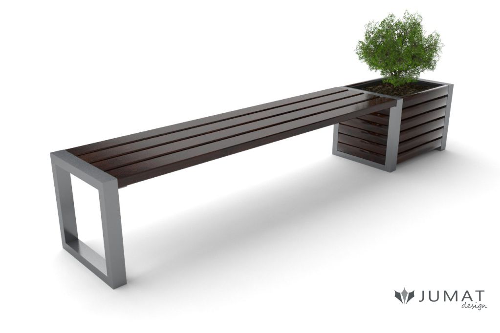 Ławki parkowe Modern to stalowe ławki miejskie połączone z donicą miejską. Ławki parkowe bez oparcia z donicą na kwiaty lub ławki parkowe z oparciem z donicą miejską. Ławki parkowe ze stali lakierowanej proszkowo lub ze stali nierdzewnej. Ławki stalowe z siedziskiem z drewna jodła, jesion, dąb lub egzotycznym. Ławki uliczne do postawienia, przykręcenia lub zabetonowania w podłożu