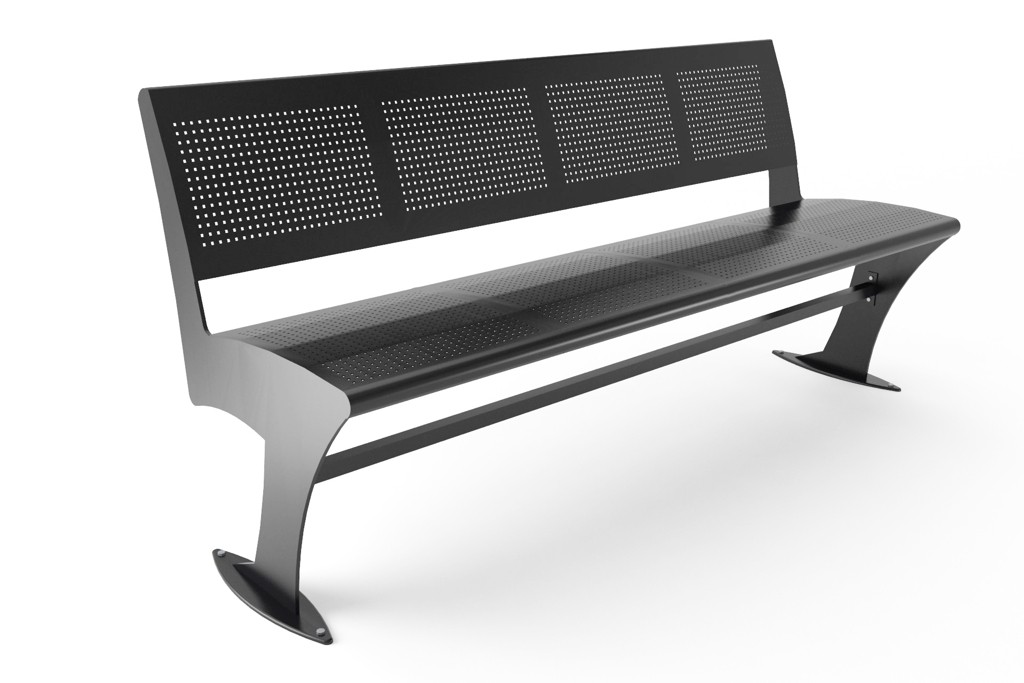 Ławki parkowe Sekwana ażur kod 0124A wykonane ze stali lakierowanej proszkowo, z siedziskiem i oparciem z stalowej blachy ażurowej, nowoczesne ławki parkowe odnajdujące swoje miejsce głównie w miejscach obsługi podróżnych. Ławki uliczne, wygodne, trwałe, są uzupełnieniem kolekcji koszy miejskich Sekwana, donic parkowych Sekwana, stojaków rowerowych, tablic i gablot informacyjnych i innych produktów tej serii, których wspólny montaż  nada nowy charakter każdej przestrzeni miejskiej