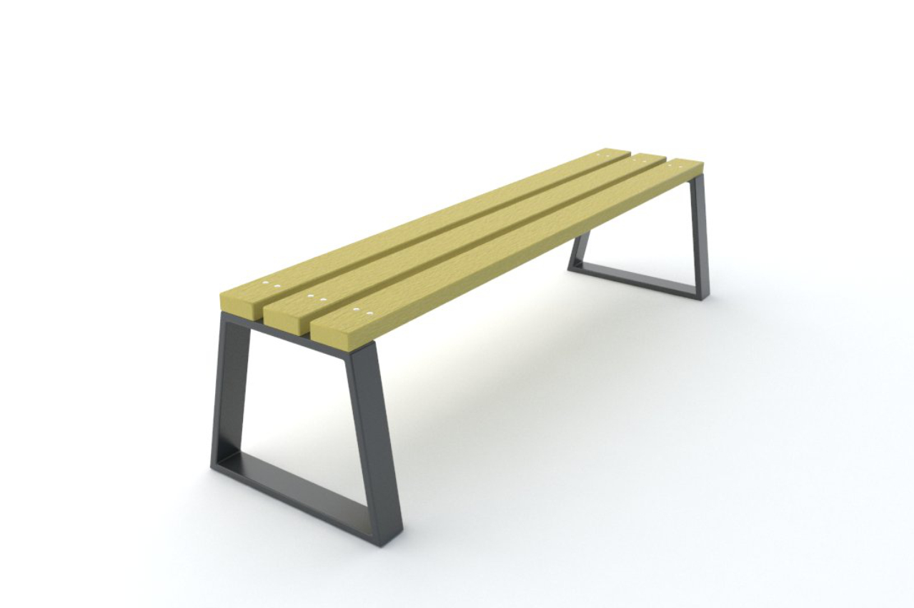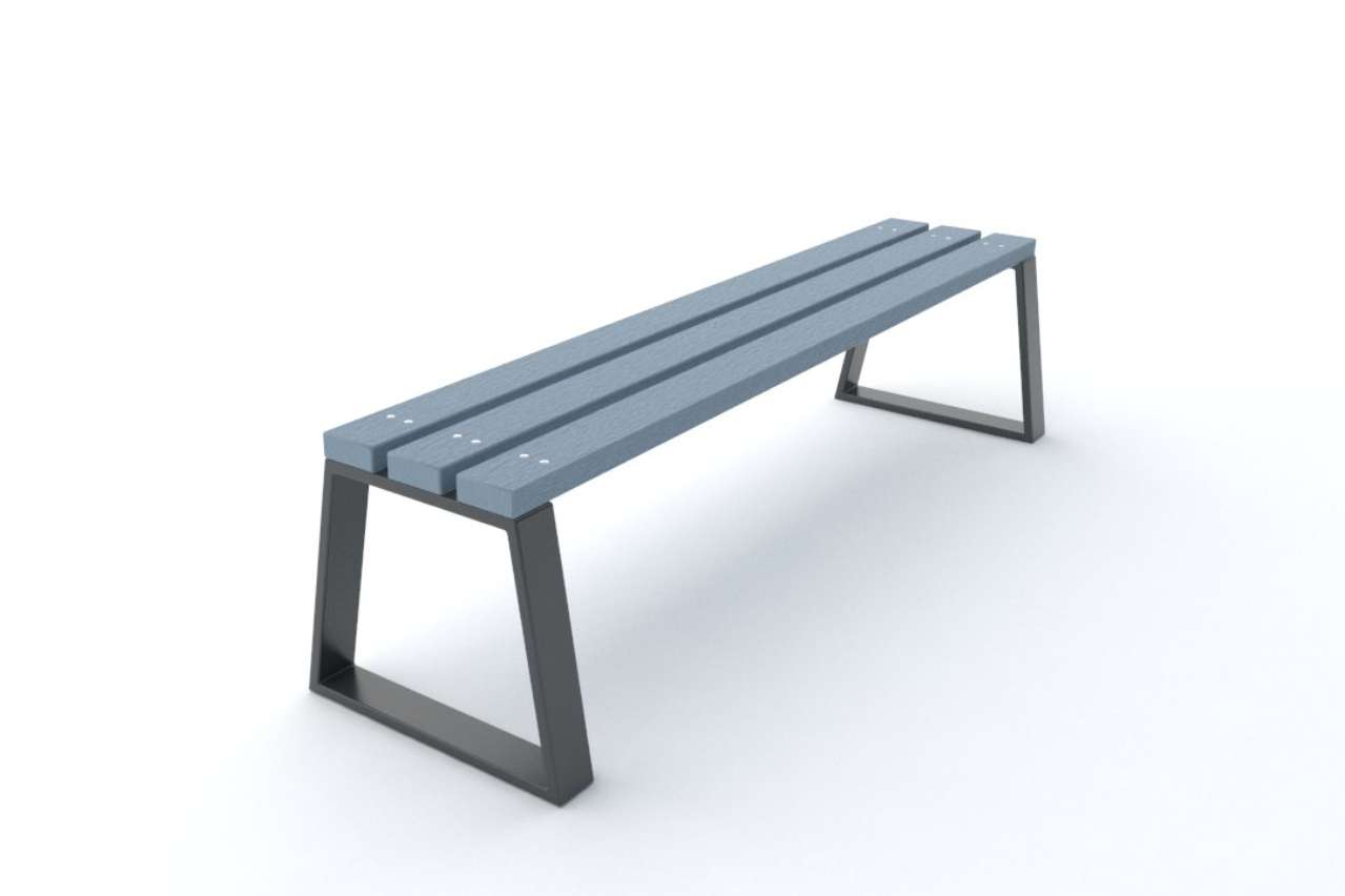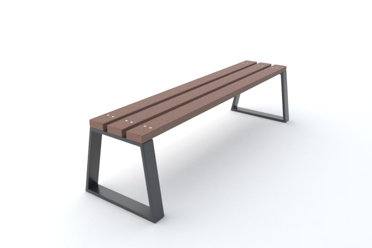 Ławki parkowe z tworzywa sztucznego w wersji bez oparcia ze stali lakierowanej proszkowo lub nierdzewnej, ławki stalowe z siedziskiem z tworzywa sztucznego, odpornym na warunku atmosferyczne, ławki uliczne nie wymagające konserwacji. Ławki parkowe z listwami z tworzywa sztucznego – kolorystyka do wyboru za dopłatą, standardowy kolor ciemny brąz. Ławki miejskie do postawienia, zabetonowania lub przykręcenia.