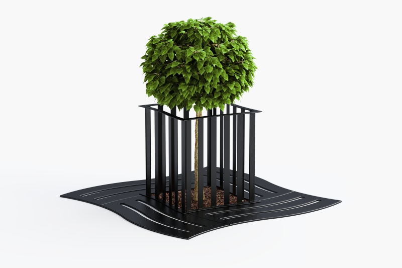 Osłona drzew Sekwana to zestaw pionowej osłony drzew i poziomej kraty stalowej o nowoczesnej stylistyce, pełni funkcje ozdobnego zabezpieczenia drzew i krzewów. Osłona stalowa wykonana ze stali lakierowanej proszkowo lub stali nierdzewnej. Możliwość zmiany wymiarów w zależności od szerokości drzew