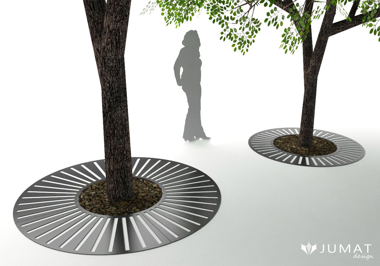 Poziome osłony drzew to wysokiej jakości kraty stalowe lakierowane proszkowo, funkcjonalne, nowoczesne kraty stalowe montowane przez przykręcenie lub ułożenie na podsypce, np z kruszywa